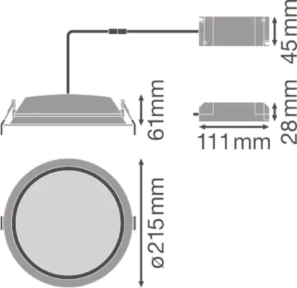 Description Ledvance LED Downlight Alu DN200 25W 2250lm 100D - 830 Warm White | 215mm - IP44