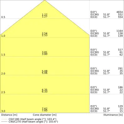 Beam angle of 100°