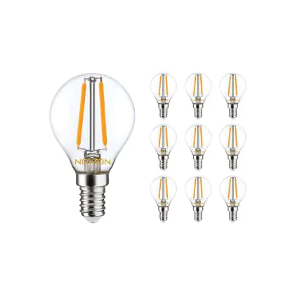 Multipack 10x Noxion Lucent Lustre LED E14 Ball Filament Clear 2.5W 250lm - 822-827 Dim To Warm | Dimmable - Replaces 25W