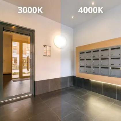 The color temperature (4000K) creates a fresh and welcoming atmosphere. It is ideal to enlighten entrances, corridors and for general lighting.